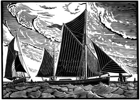 Original signed linocuts. "Dodds blends imagination, empathy and sheer graft to produce paintings and prints which, in their immaculate detail and integrity of form, express both the physical and metaphysical nature of handmade wooden boats..." The Independent.