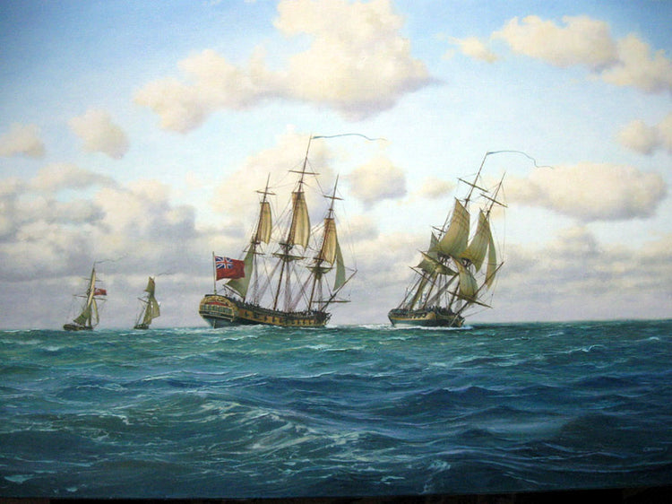 Paintings depicting historical marine subjects by the distinguished French artist Hubert Cartahu.