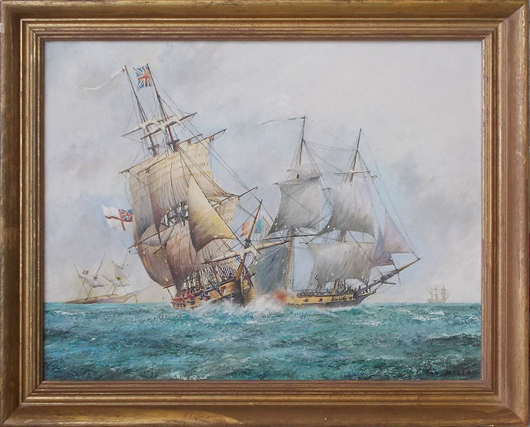 We present a fine pair of original oils by this 20th-Century marine artist. Ian McLean is known for his accurate and painterly depictions of historical marine subjects in oil on canvas.