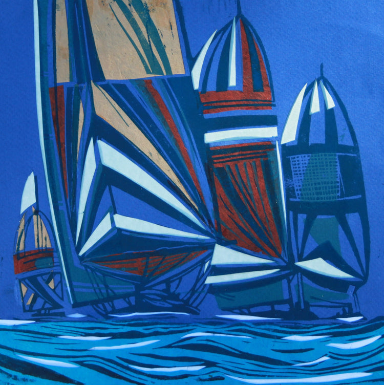 Original linocuts and paintings of classic yachting subjects by this highly distinguished marine artist.