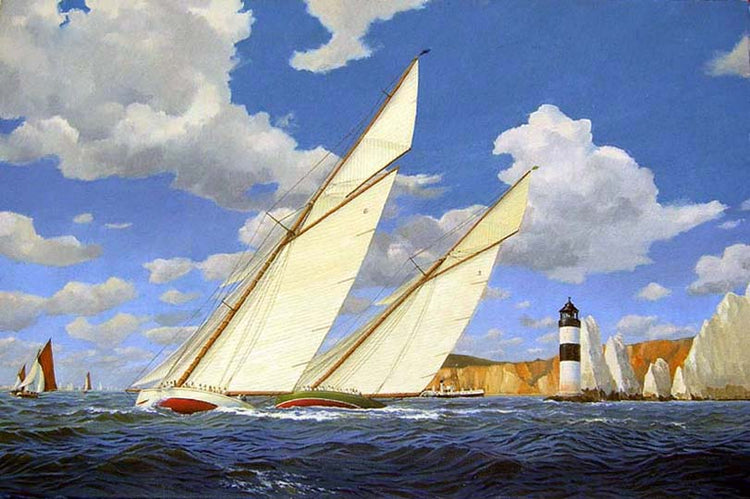 Lulworth and Shamrock racing off the Needles. August 1929 - Martin Swan RSMA