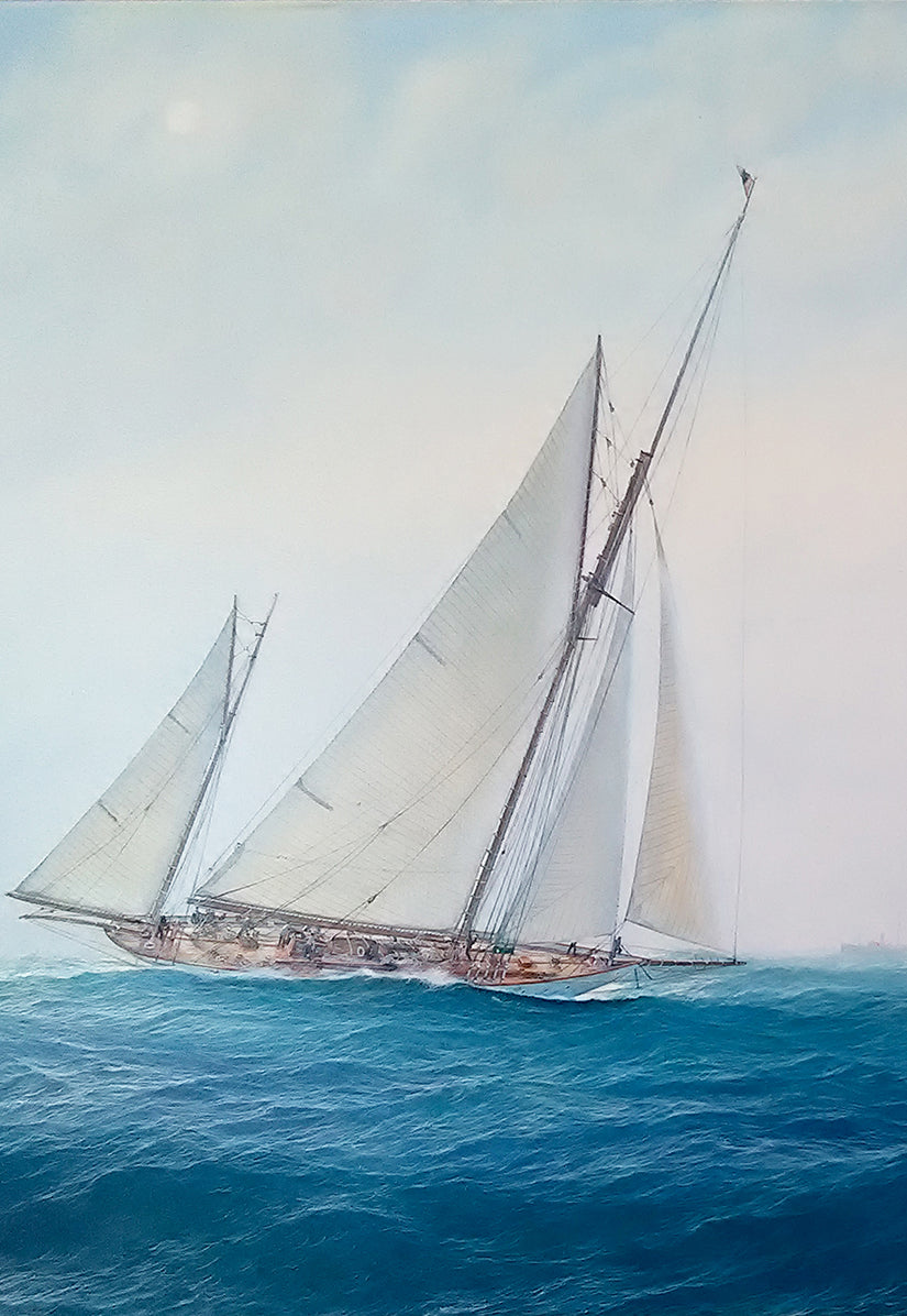 America's Cup, J-Class and Big Class subjects in oil on canvas by this prize-winning marine artist.