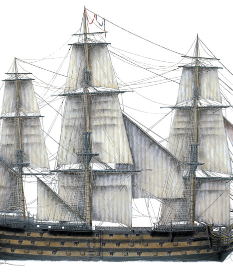 A series of meticulous studies of historical sailing ships, including HMS Victory, HMS Surprise, HMS Beagle, the Bounty, Cutty Sark, and more... Highly detailed limited edition prints..