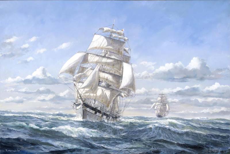 Fine prints on canvas by the Dutch master maritine painter, including several vibrant studies of 'Cutty Sark'.... The original paintings are also available.