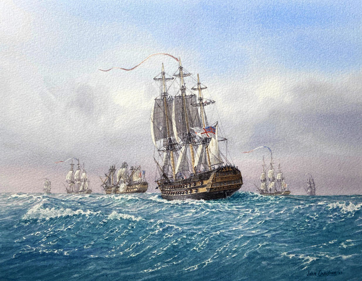 Nelson decided to lay his ship across the enemy’s stern. Although this meant Agamemnon was subject to fire from the Ça Ira’s stern guns, the way Nelson maneuvered his ship meant that the larger Frenchman could never bring her broadside to bear, support from the fleet eventually came and the Frenchman lowered her flag soon after.