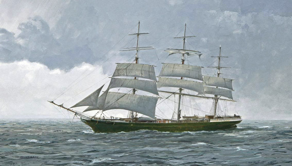 One-time flagship of the Aberdeen White Star line, built by W. Hood & Co. and launched in March 1876. A popular ship sailing to Sydney and Melbourn. Her best day's run was a respectable 320 miles. But such a run was more the norm once steam became established in the trade.