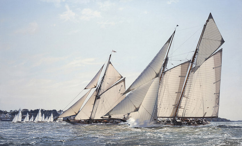 25-35 knots of wind meant the British Classic Yacht Club Regatta in 2008 was lively, to say the least. Here we see Mariette and Mariquita going head to head in front of the Royal Yacht Squadron in Cowes. The helmsman of Mariette described it as one of the best sails he'd ever had!