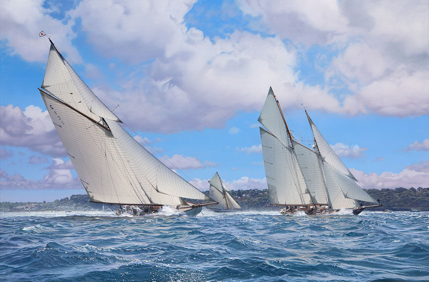 Here we see three of the world's most beautiful classics - Mariette, Mariquita, and Tuiga shortly after a start off the Royal Yacht Squadron.