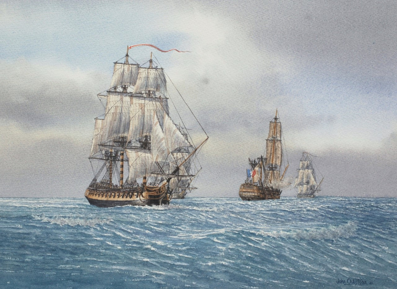 Blackwood sent word to the squadron positioned around the island and gave chase. Penelope gained and pulled up under Guillaume Tell’s stern, and the Frenchman realised that to stop and engage would give time for the squadron to catch up, so tried to outrun the frigate. By staying on the stern of the Frenchman, Blackwood by morning had disabled Guillaume Tell with minimal damage to Penelope. The Frenchman had lost her main and mizzen topmasts and spars, allowing HMS Lion and HMS Foudroyant to catch up from the South. The Frenchman was captured and subsequently taken into the British Navy service as HMS Malta.