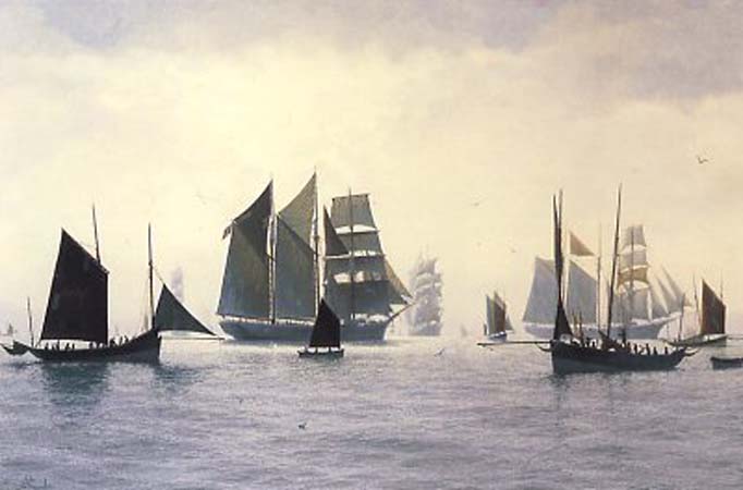 Years later, researching material for his paintings, this childhood memory drew him to the history of these fishing traditions and he was probably the only highly celebrated maritime artist to have a personal memory of these majestic fleets under sail.