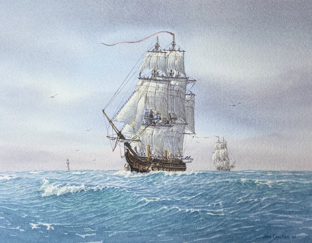 HMS Foudroyant off the Eddystone Lighthouse - John Christian