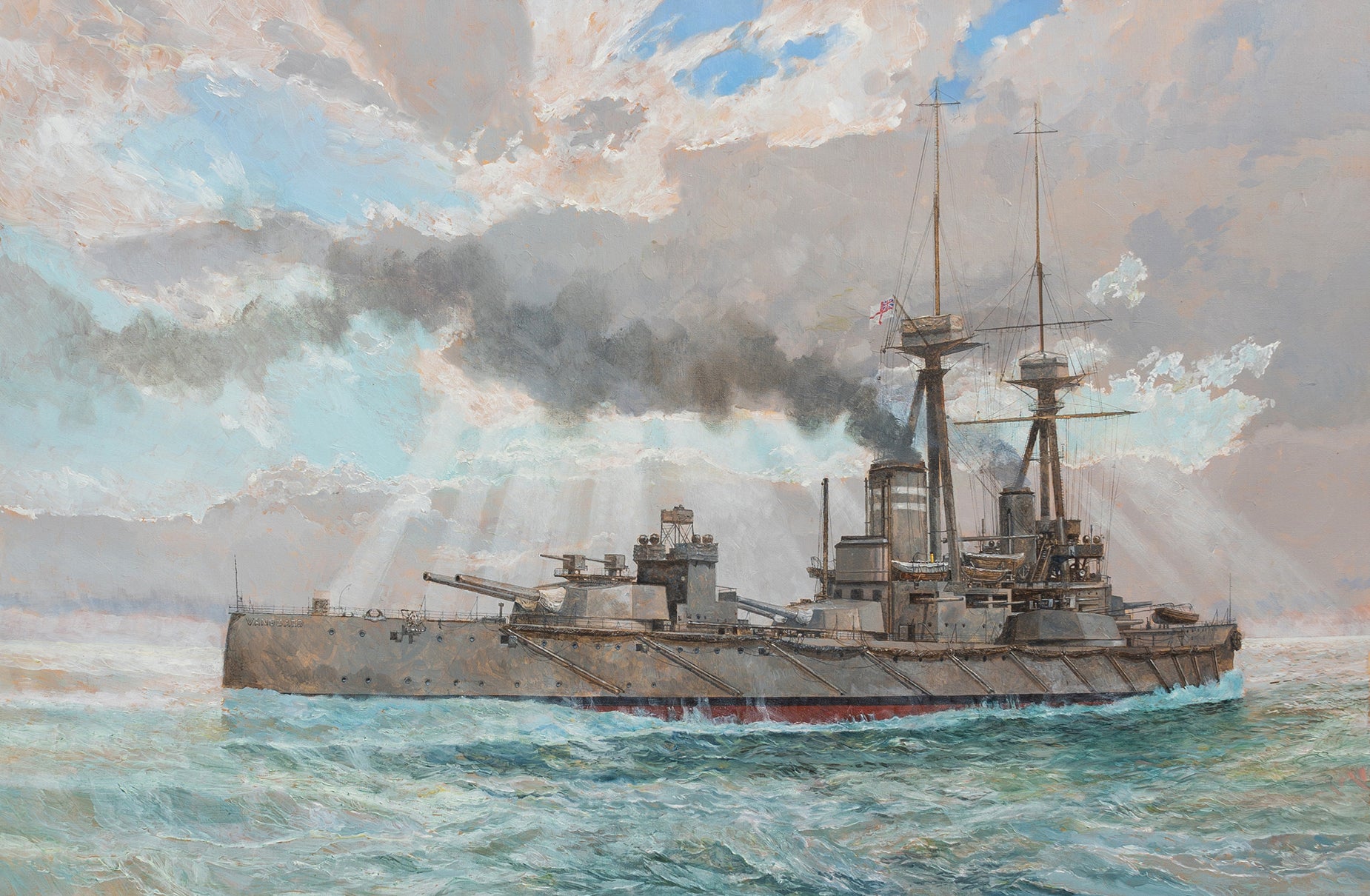 H.M.S Vanguard fought at Jutland in 1916 and blew up in Scapa Flow in 1917 due to an ammunition explosion which was a fairway common thing with ships of that vintage. Most of her crew perished with her.