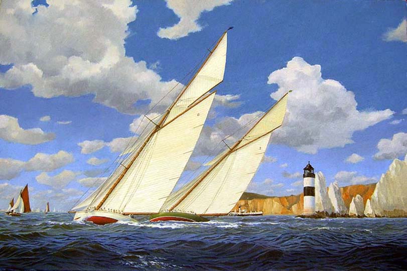 Lulworth and Shamrock racing off the Needles. August 1929 - Martin Swan RSMA