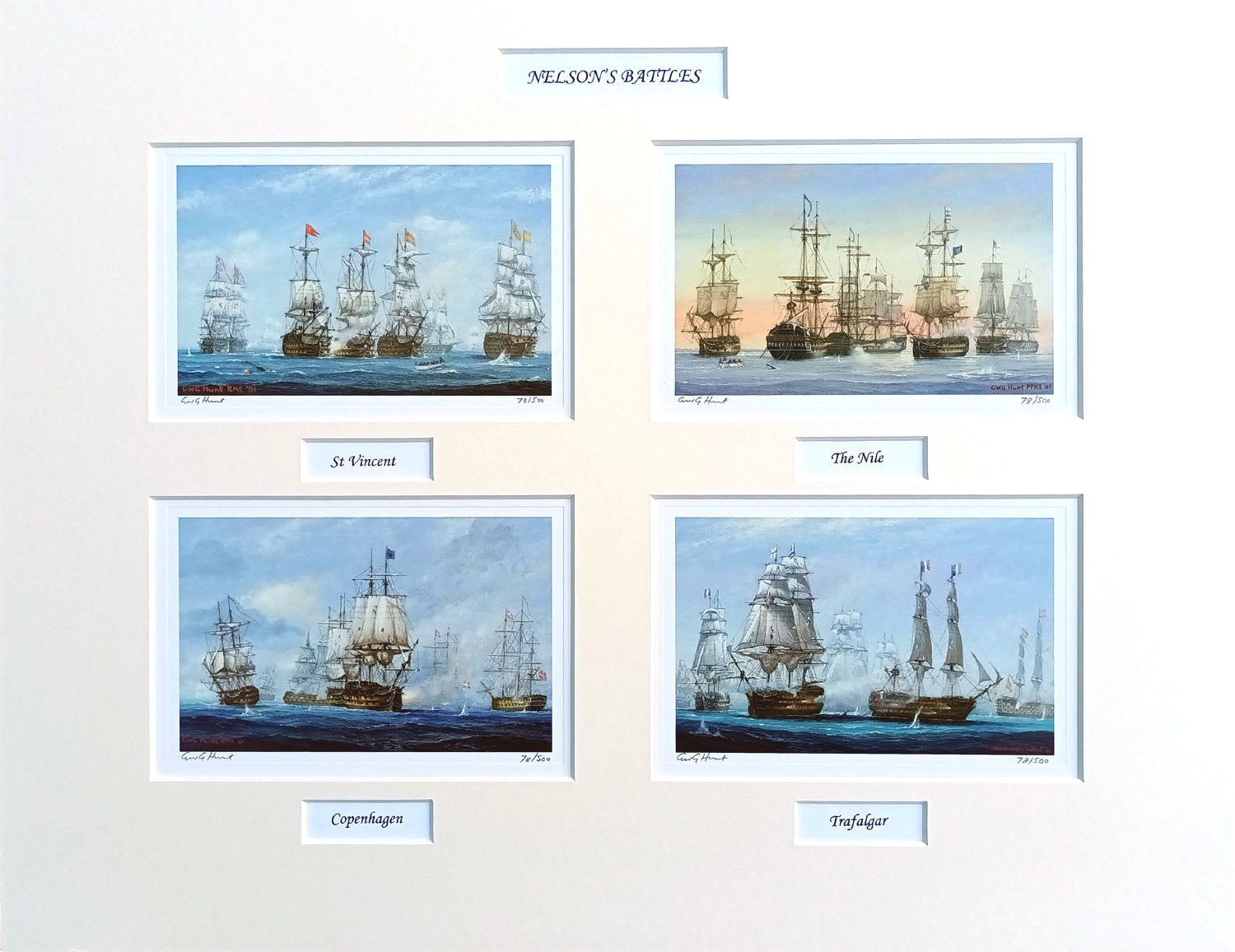 Nelson's Battles - A set of four limited edition prints by GWG Hunt, RN
