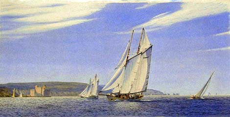 Schooners Sailing in the Western Solent. Americas Cup Jubilee Regatta, August 2001 - Martin Swan RSMA
