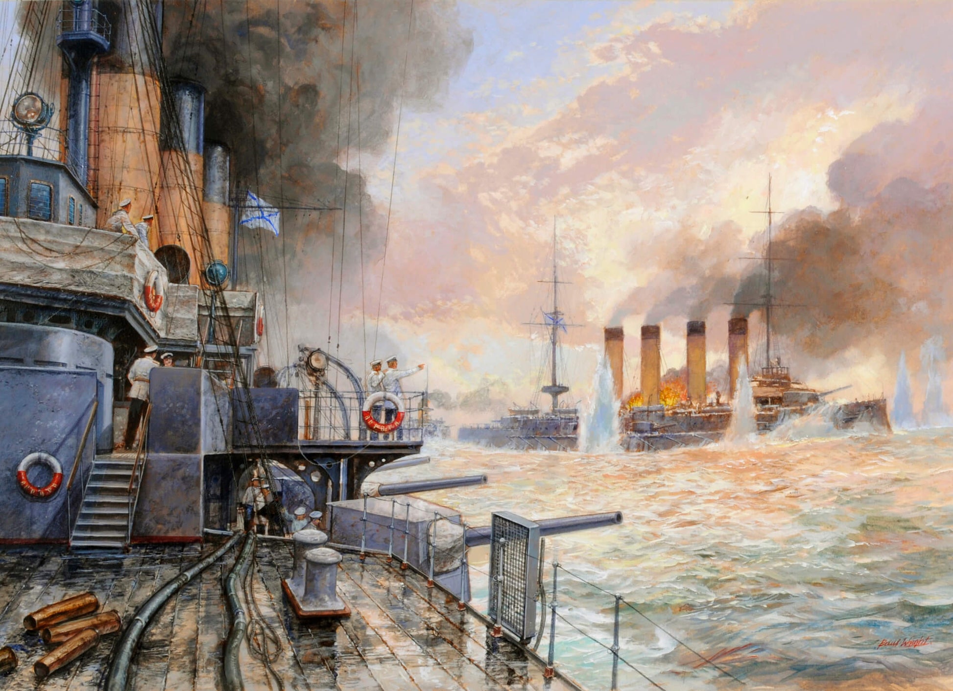 The Battle of Tsushima between the Russians and the Japanese resulted in the greatest naval defeat in one battle in all of recorded history. With their base in Port Arthur on the Chinese coast threatened by the Japanese army and navy, the Russians assembled a fleet of 40 vessels to sail from the Baltic to the Far East to rescue their colony.