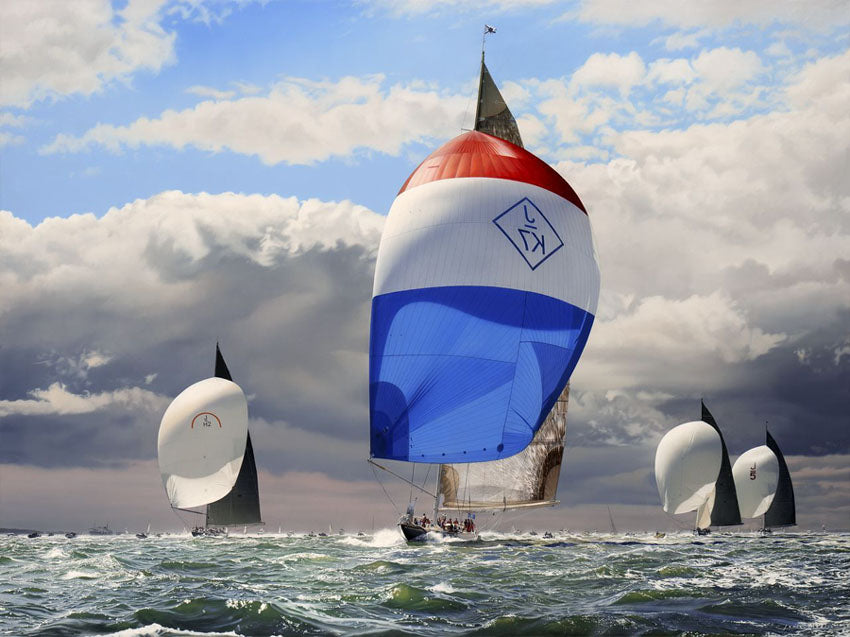 Here we see Velsheda leading Rainbow, Lionheart, and Ranger to the finish on Friday's race of the Solent regatta.