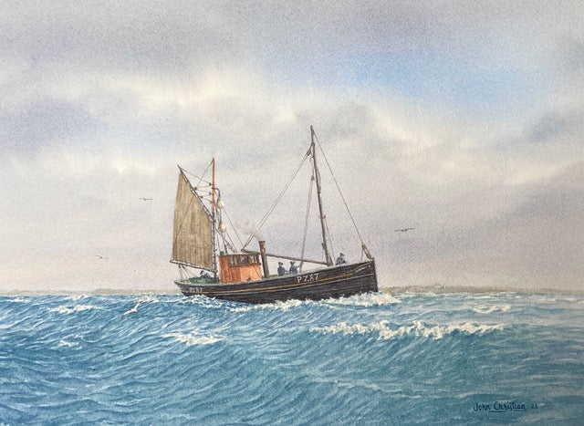 Cecil Richards and his brother, staunch Methodists like many of the folk in Newlyn, agreed to take the petition make the 400-mile voyage in their fishing boat, the 50-ft PZ 87 Rosebud, a traditional lugger but one of the first to be built with engines installed. There were no funds for this journey so when they selected a crew, each of the men agreed to provide a small sum sufficient to cover the cost of their keep during the voyage. In the event, that their good deed was rewarded, people came forward to contribute to victualling the ship, and four kindly people guaranteed £5 apiece to cover expenses. Thus, the Rosebud sailed with a volunteer crew, partially victualled, and with £20 to cover all eventualities!