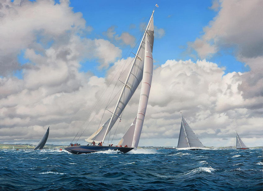 Here we see the only original and British 'J' - Velsheda, ahead of Ranger, Lionheart and Rainbow at the Helford mark, during the 2012 J-Class Regatta in Falmouth.